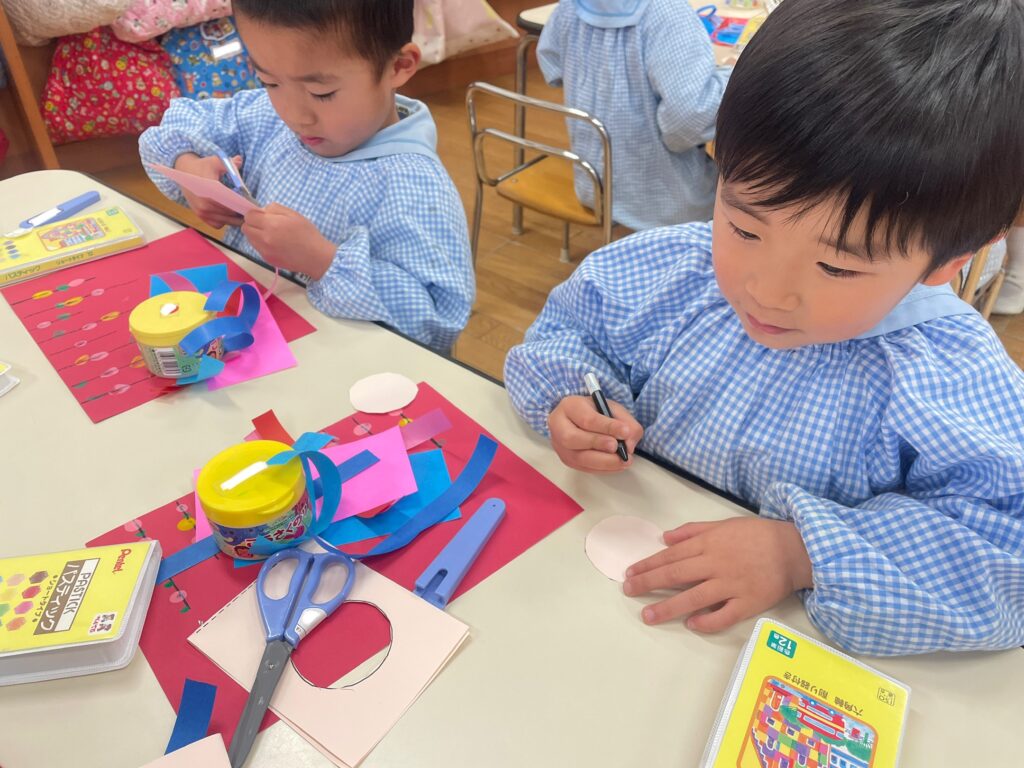 うめ組もも組のひなまつり制作は、参観にて飾られますのでお楽しみに💕