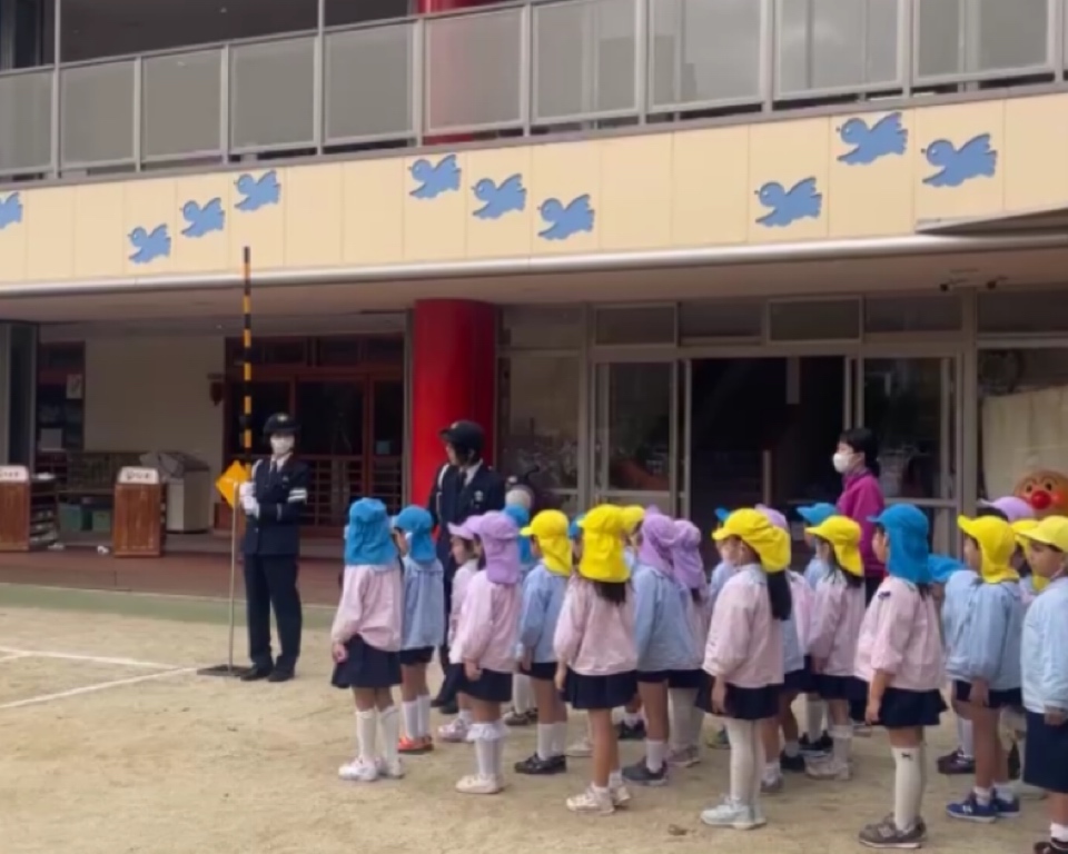 交通指導員さんのお話が始まると、交通事故に遭わない為に、真剣に聞いていました!