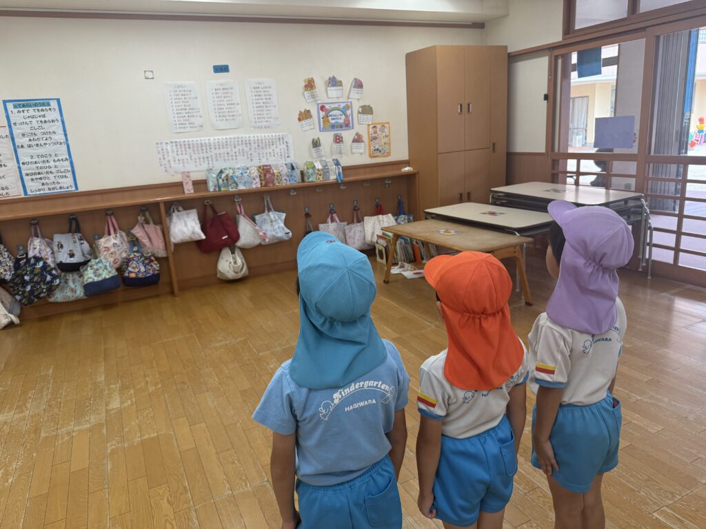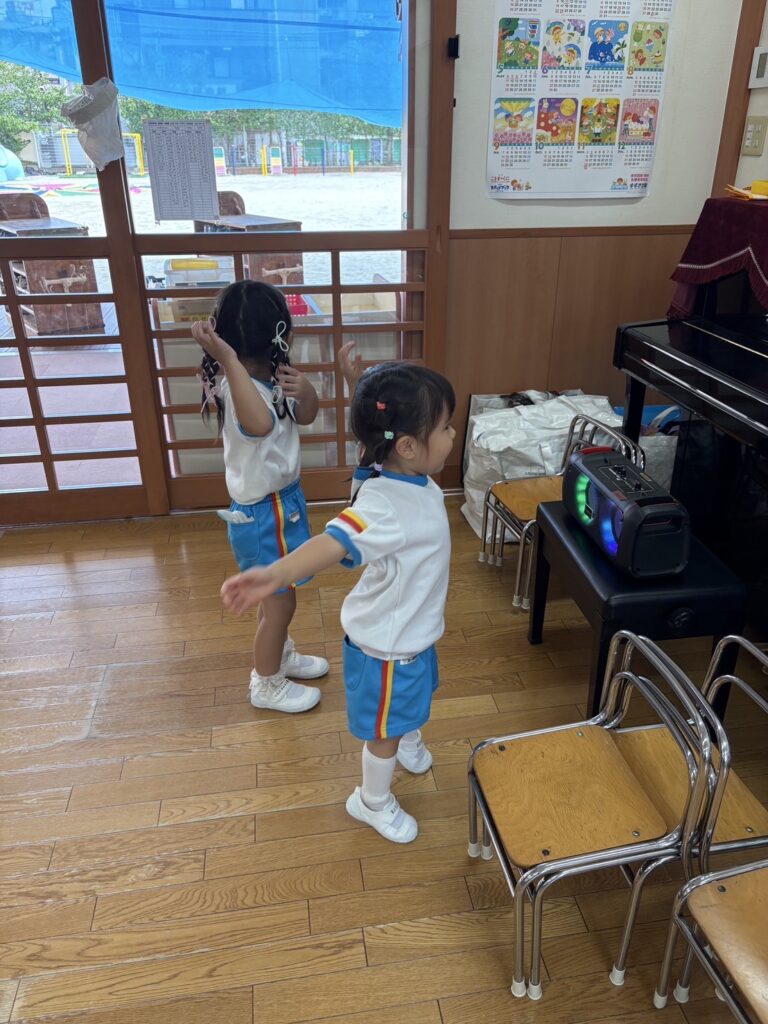 バスを待つお部屋では、遊戯の音楽を聴きながら遊戯の練習をするももぐみさん💞