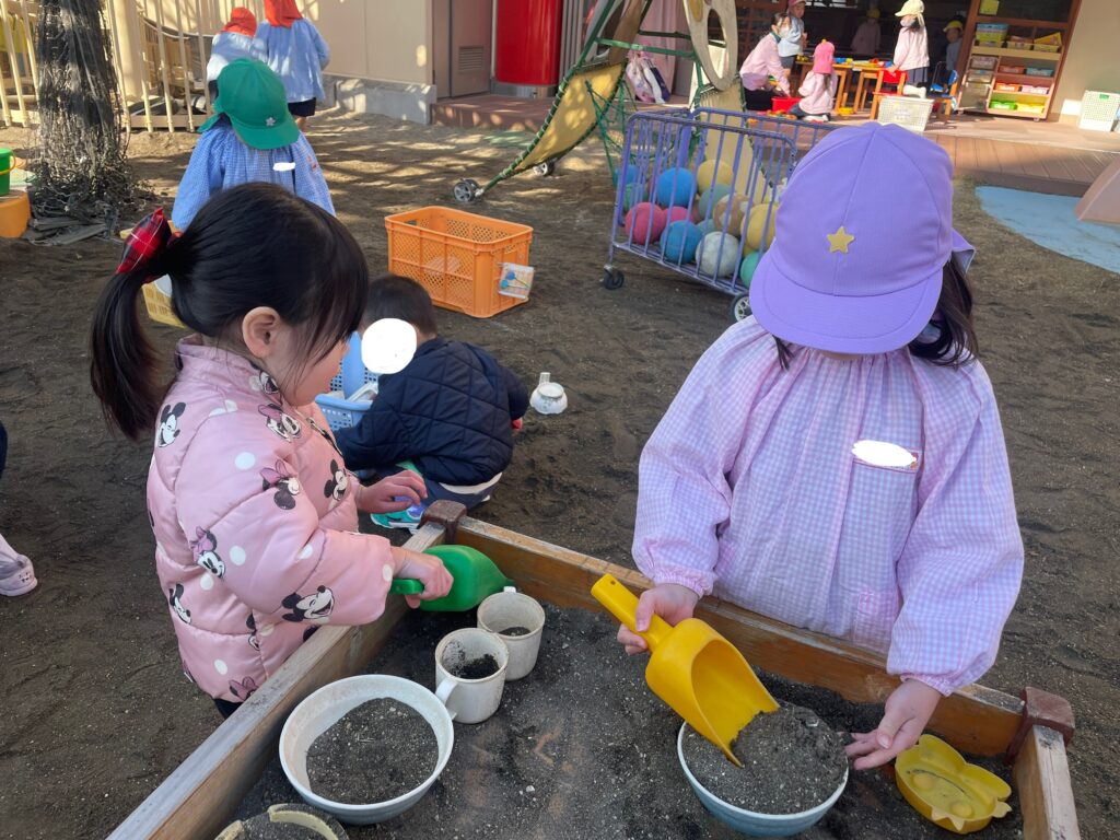 砂場が大人気のようで、砂をご飯に見立てて遊んでいました🫶🏻