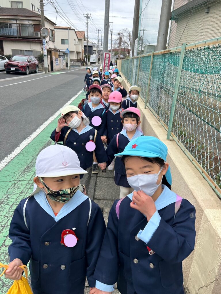 見学を終えると、歩いて幼稚園まで帰った子ども達でした!