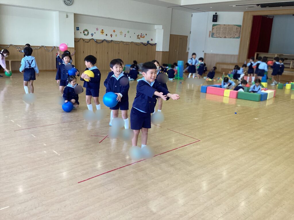 その後の遊戯室遊びでは、ボール遊びが大人気!