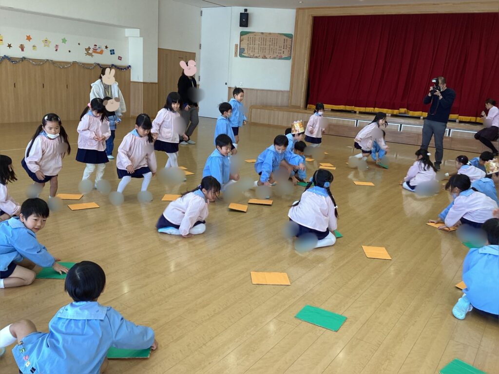 発表会お疲れ様会と題しまして、3クラスで遊戯室で給食を食べ、その後遊戯室で遊びました。
