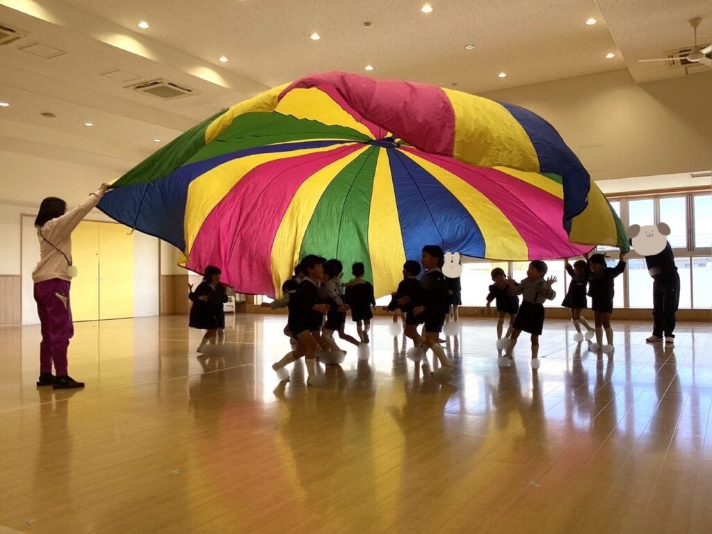 誕生会でやったら楽しそうと、先生同士で話に出ていた『バルーンバスケット』をして遊びました。
