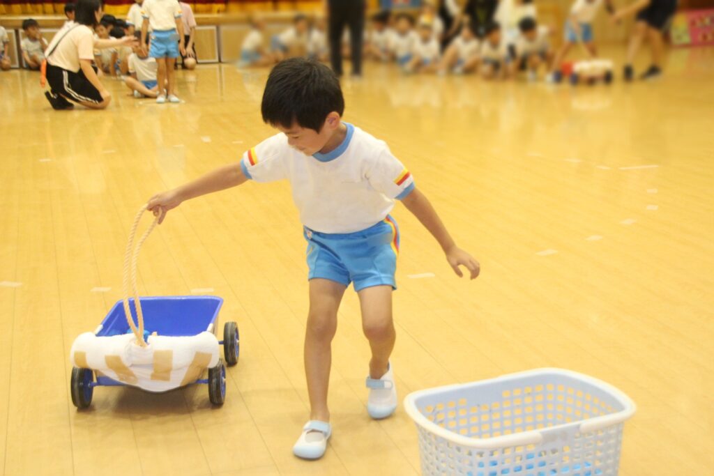 10月の誕生会では、カートリレーを行いました。