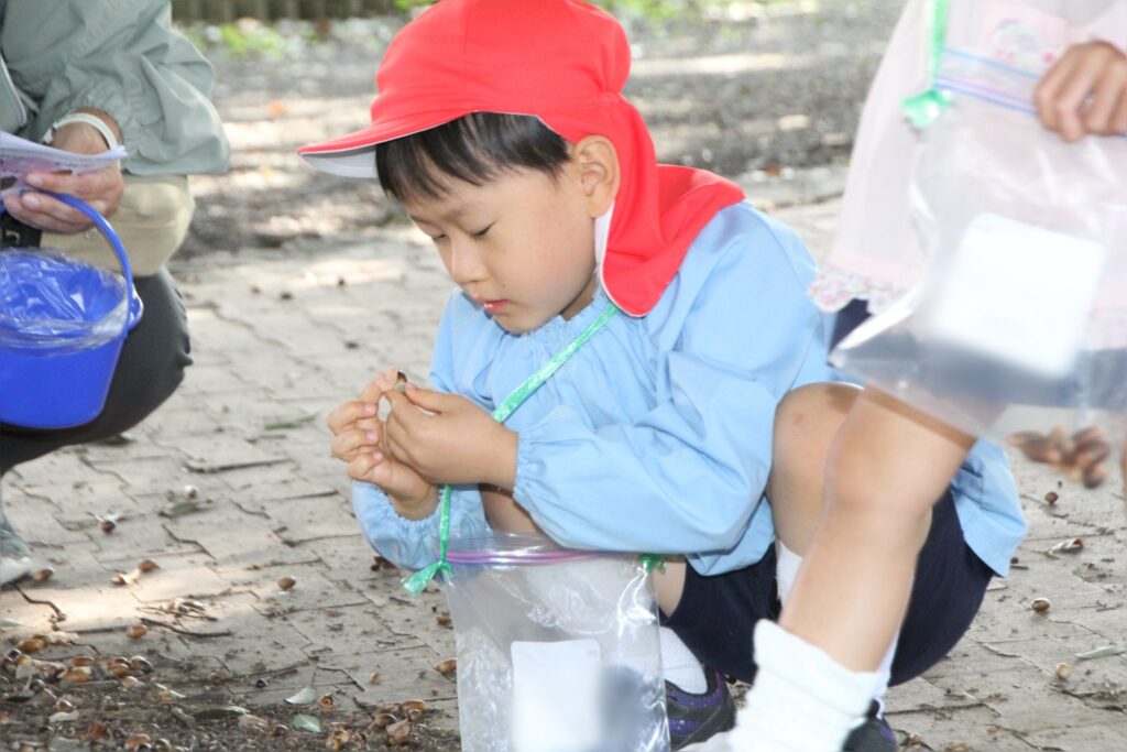 幼稚園よりも沢山の種類のどんぐりが落ちている事に、子ども達はワクワク⭐︎