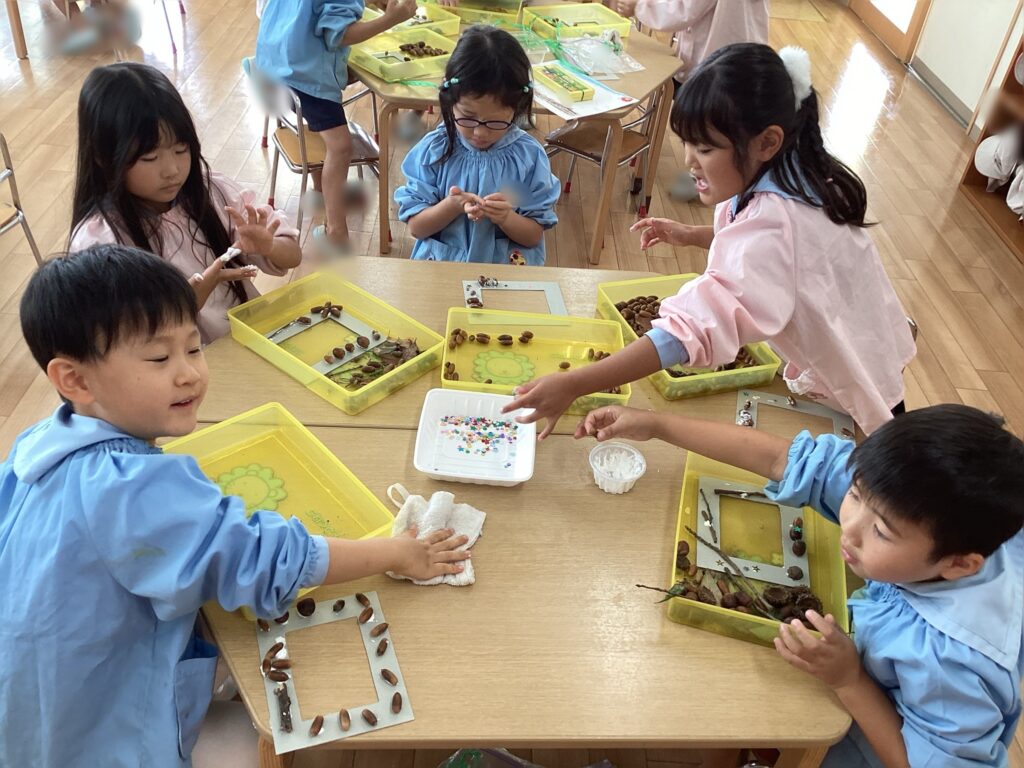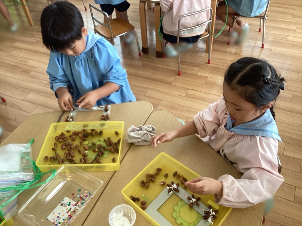 中には、このようにどんぐりを組み合わせてお花の形にするお友達もいました!