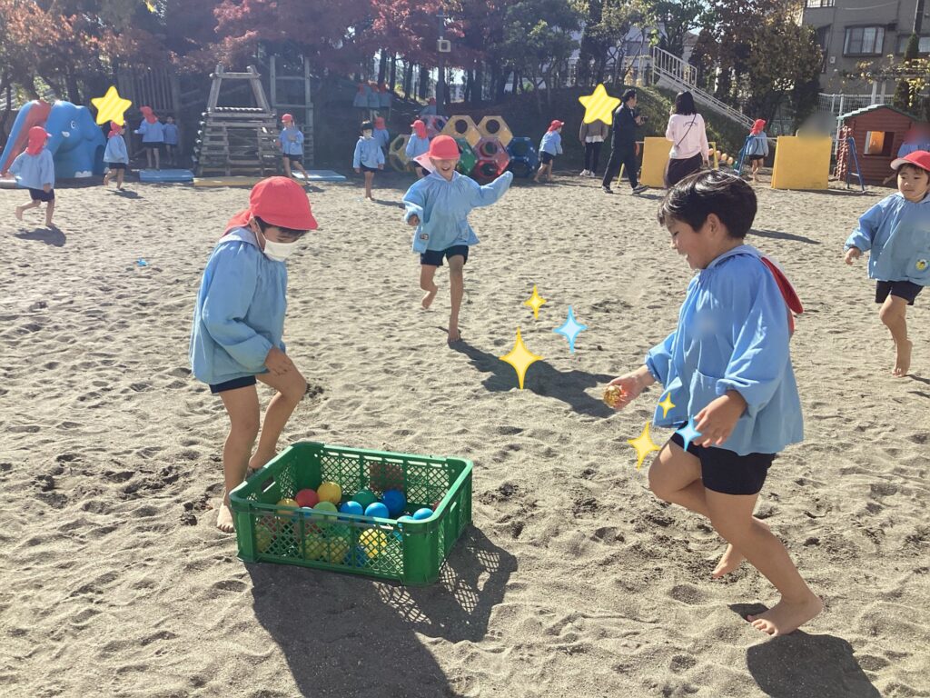 11月の誕生会は、園庭に隠されたボールを探す宝探しゲームを行いました!