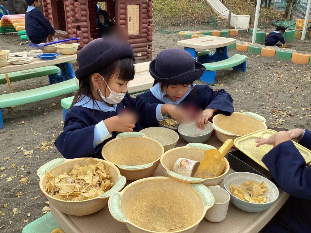 いちょう広場にある木の葉が散り始め、子ども達の遊びを広げています。
