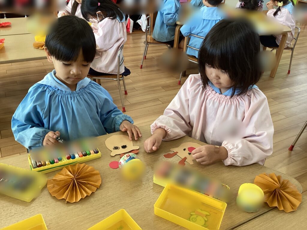 顔を描く時、鼻やひげの場所によって位置が変わる為考えながら出来るよう声を掛けると…