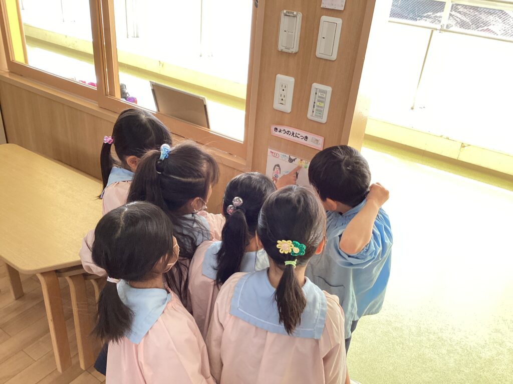 毎日変わる絵日記を見るのが好きなようで、私が変えるのを忘れてしまった時は「先生!早く変えてー!」と怒られてしまいます(笑)
