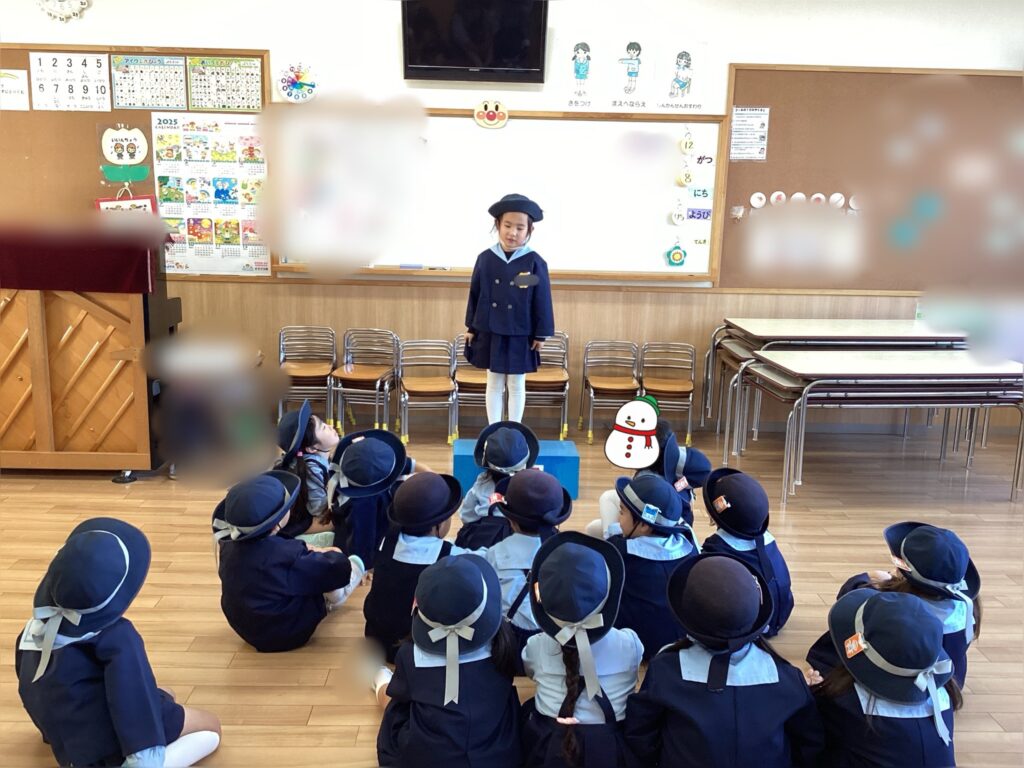 帰りのご挨拶の前に最近はみんなの前で発表する時間を作っています。