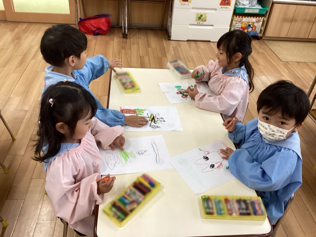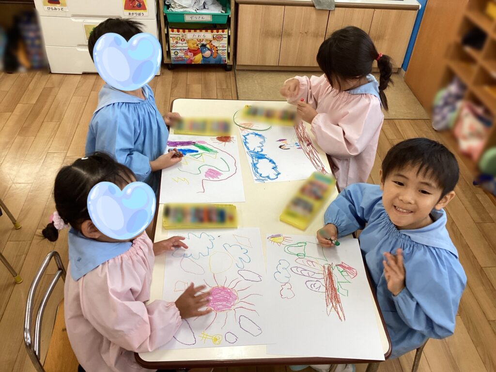 園に戻ってからは、秋の遠足の思い出を描いていきました。