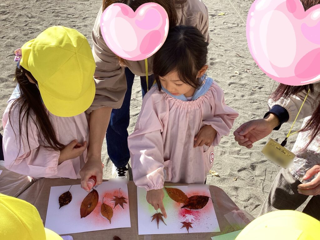落ち葉遊びでは、落ち葉を使った季節ならではの遊びを楽しみました。