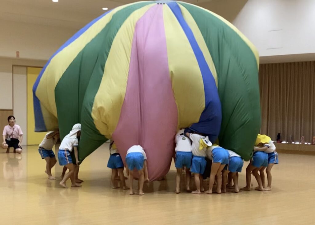 足幅を揃え体全体を使い大きな風船を作りあげるのが難しく、苦戦していた2組さんでしたが、