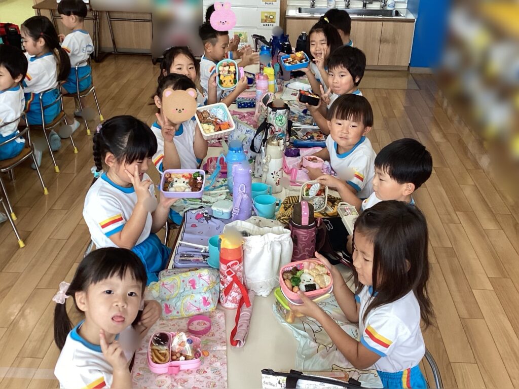 登園してすぐに、お弁当の中身やお弁当箱のキャラクターを教えてくれ、食べる事を待ちわびていました。