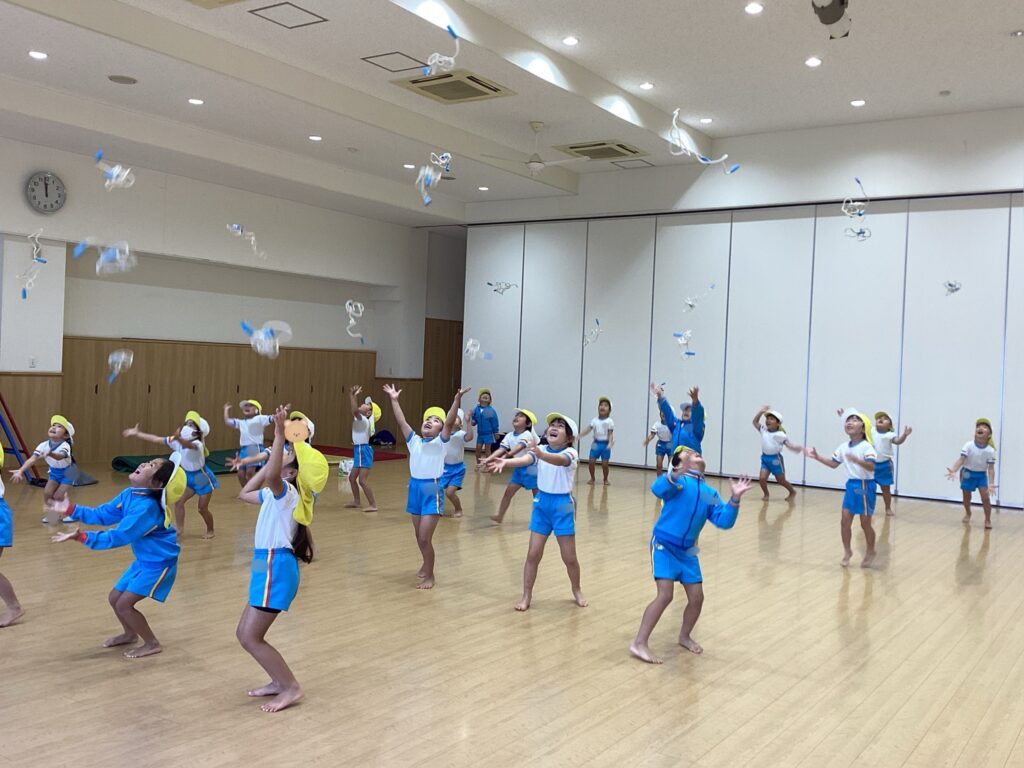 ぐちゃぐちゃに丸めて縄跳び。空に向かってそれー!と投げたりしました。