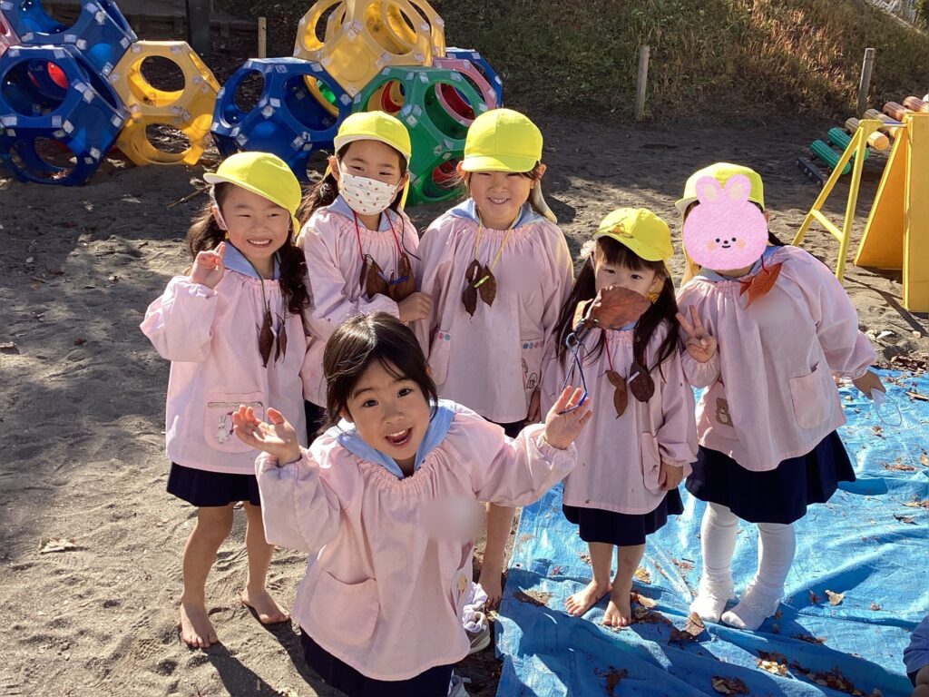 【落ち葉プール、絵の具スプレー、ネックレス作り、葉っぱの塗り絵】