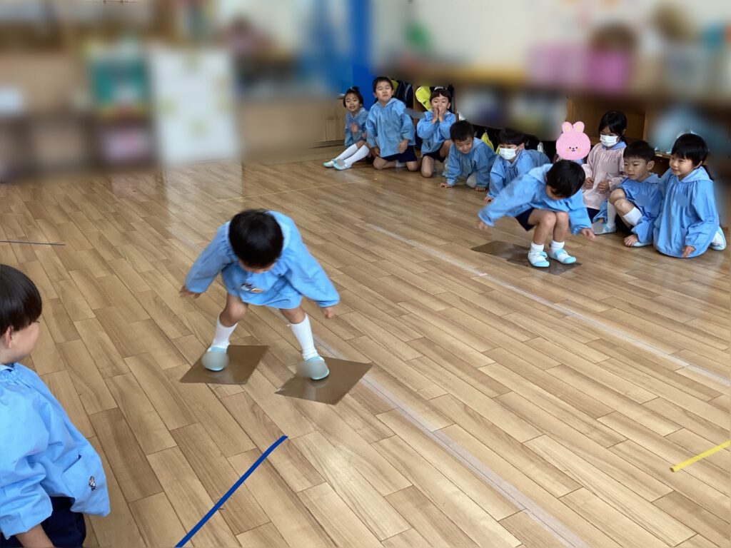 カードの上に乗りながら、前に進んでいくゲームを行いました。