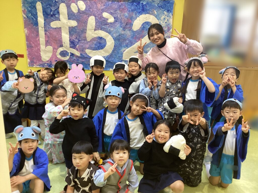 最初は、恥ずかしくて大きな声で台詞を言うのが難しかったり、舞台の上に立つと緊張してしまったりする姿が見られました。ですが、練習を重ねるにつれ少しずつ自信がつき、堂々と舞台の上に立つ事が出来るようになりました。