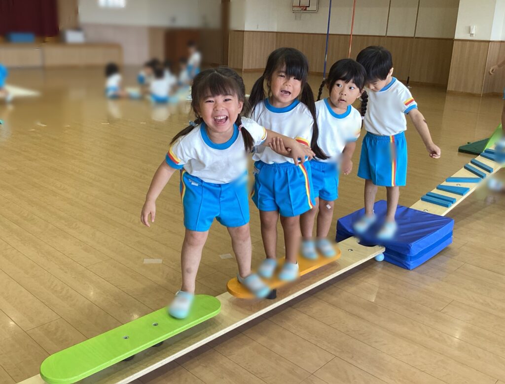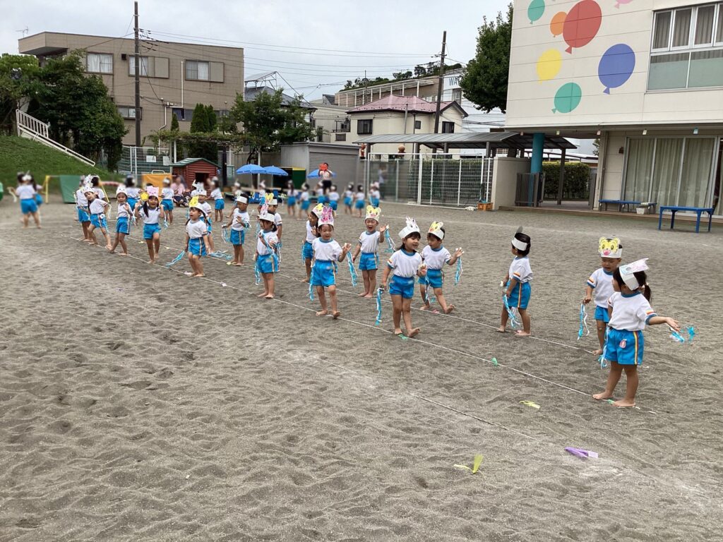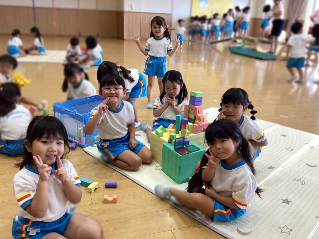 遊戯の最後には、真ん中に集まる隊形移動があるのですが、練習当初はお友達を抜かしてしまったり、曲の中で間に合わなかったりしていましたが、今では、曲に合わせてながら真ん中に集まるのも上手になってきました。