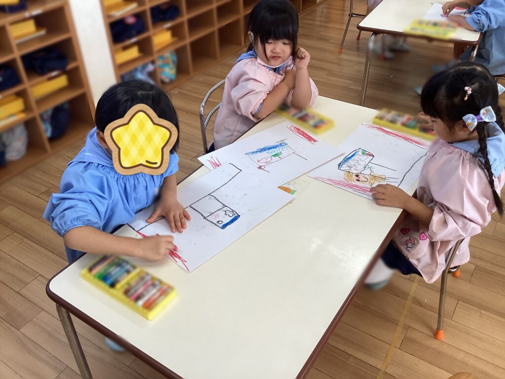 着ていた衣装や大道具などを思い出しながら伸び伸び描く姿が見られました。