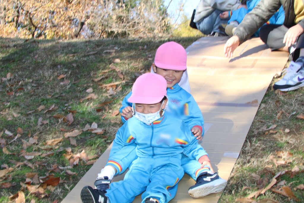 寝っ転がって滑っていたり、お友達と繋がって滑るなど初めは怖がっていたお友達もそれぞれが違う滑り方で楽しむ姿が微笑ましかったです✨