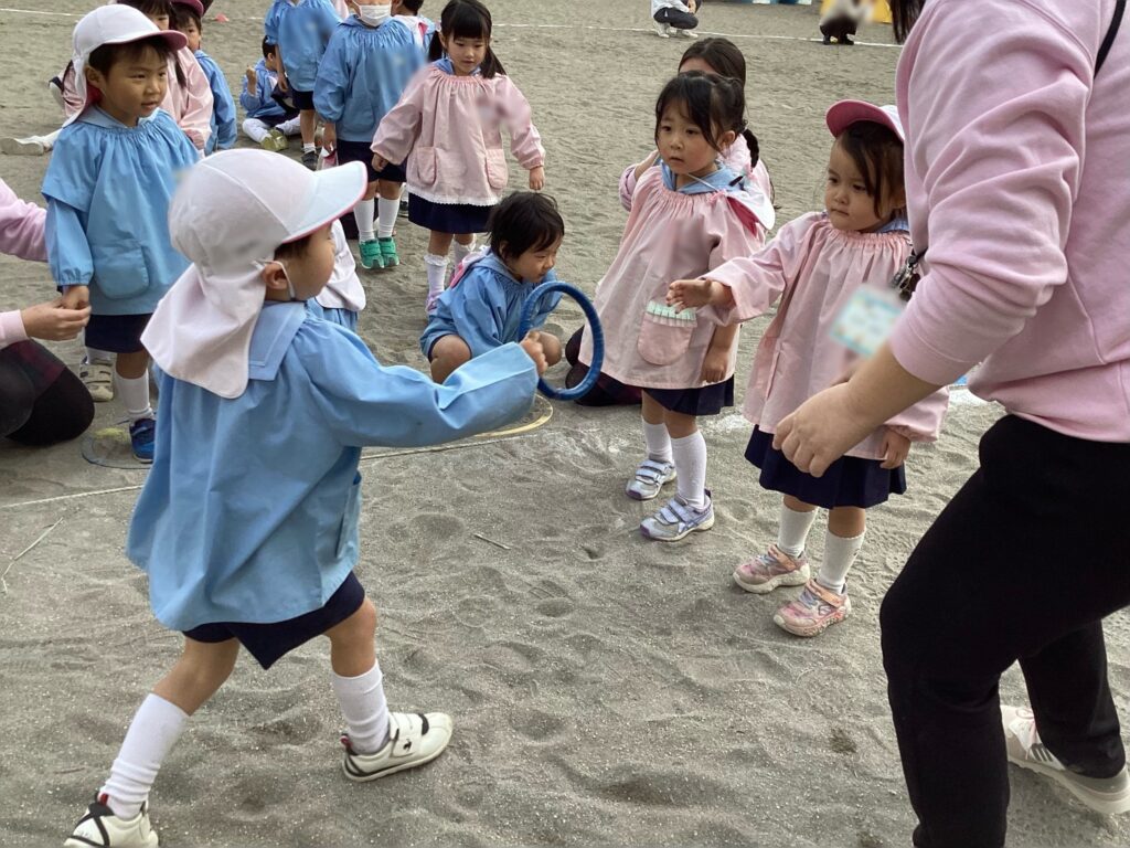 お友達にバトンを繋いでいき、全員で力を合わせて走りました!