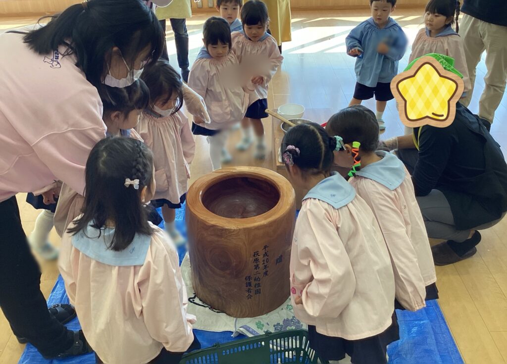 登園してから「今日はお餅付きだよねー」ととても楽しみにしていたお友達。