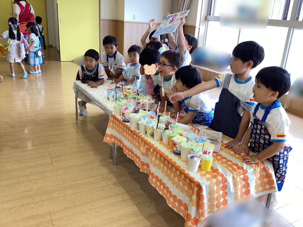 「いらっしゃいませ〜」と大きな声で盛り上げてくれたおかげで、ゆり1組グループのかき氷屋さんは110個売り上げる事が出来ました✨