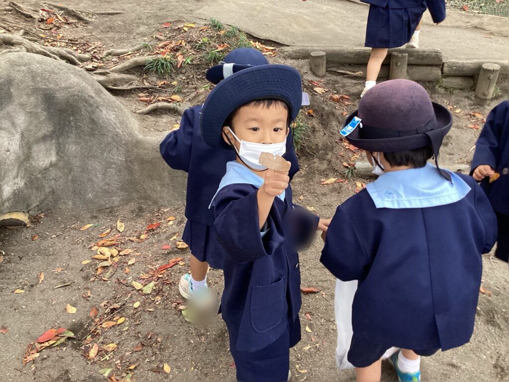 この落ち葉が何に変身するのかはお楽しみに…!また、園庭でも遊びたいと思います。
