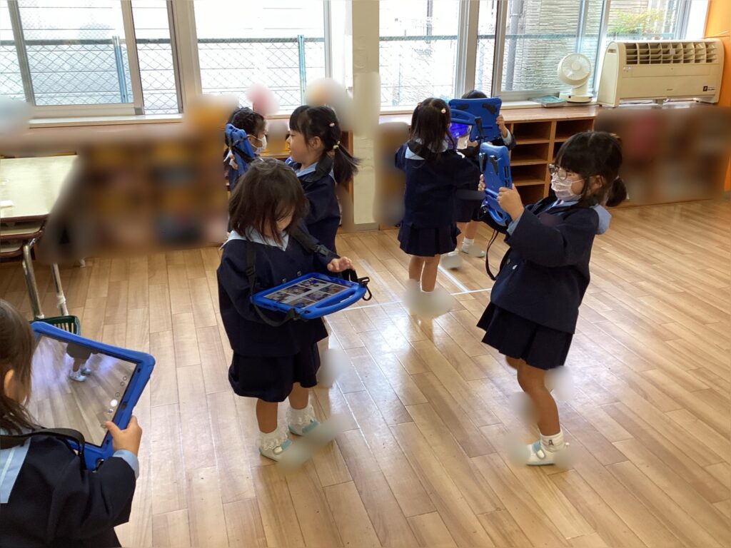 苦戦しながらも、無事全員タブレットを開くことができ写真撮影スタートです。お友達を撮ってみたり、先日育て始めたヒヤシンスを撮ってみたり、楽しく行うことができました。