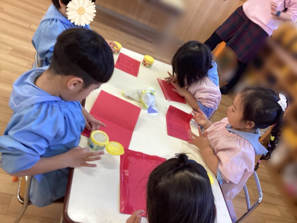 頑張り表を、のりで貼る所から行いました。【まわりのり】を覚えて丁寧に塗る姿が見られ、綺麗な仕上がりに♪