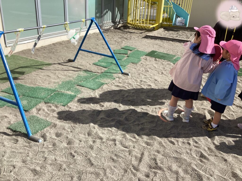 他にも、縄を使ってジャンプをしたりケンケンをしたり…と頑張りました。まだまだミッションはあるのでお友達は、外遊びの際にもチャレンジしてみて下さいね。