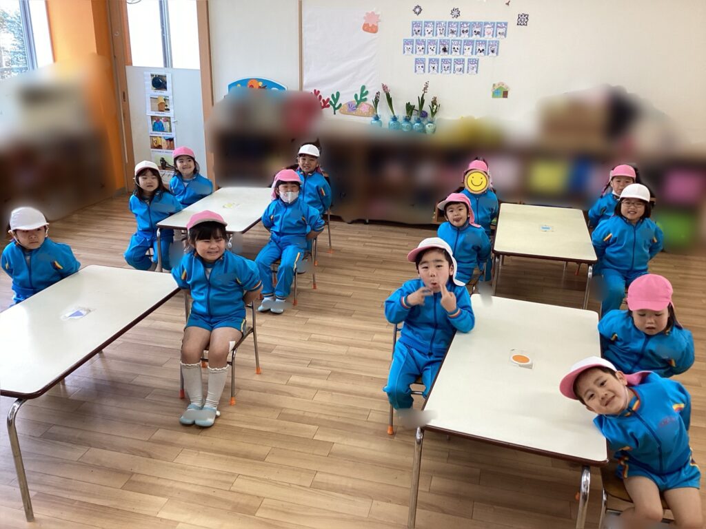 今回はどこのグループかな…とワクワクしながら椅子を移動している様子が見られています。また、仲の良いお友達と手を振り合ったり、「近いね!」とお話ししたりする姿も見られていてとても可愛らしいです。
