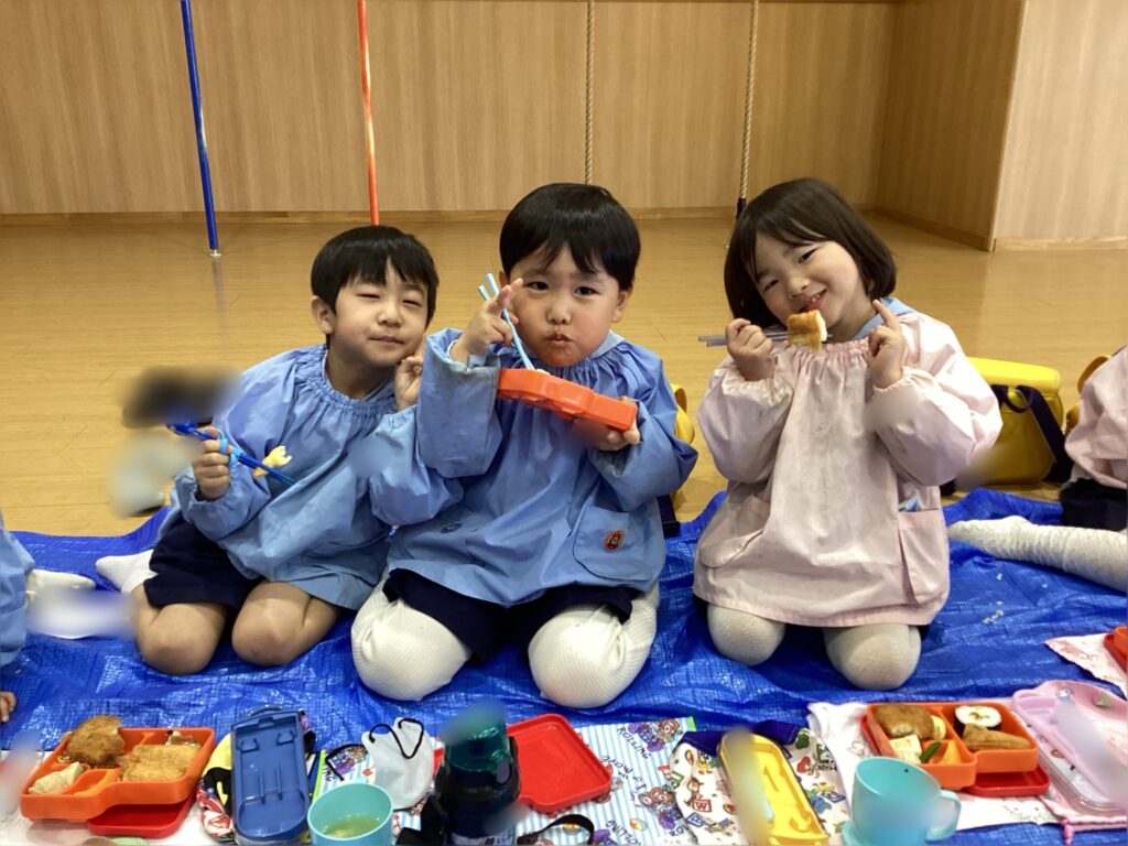 楽しそうな雰囲気だったので思わずパシャリ。完食を目指しながら、仲の良いお友達と会話しながら過ごしています。完食を目指したい子ども達が増えていて「今日は完食できそう!」と教えてくれるほどです。