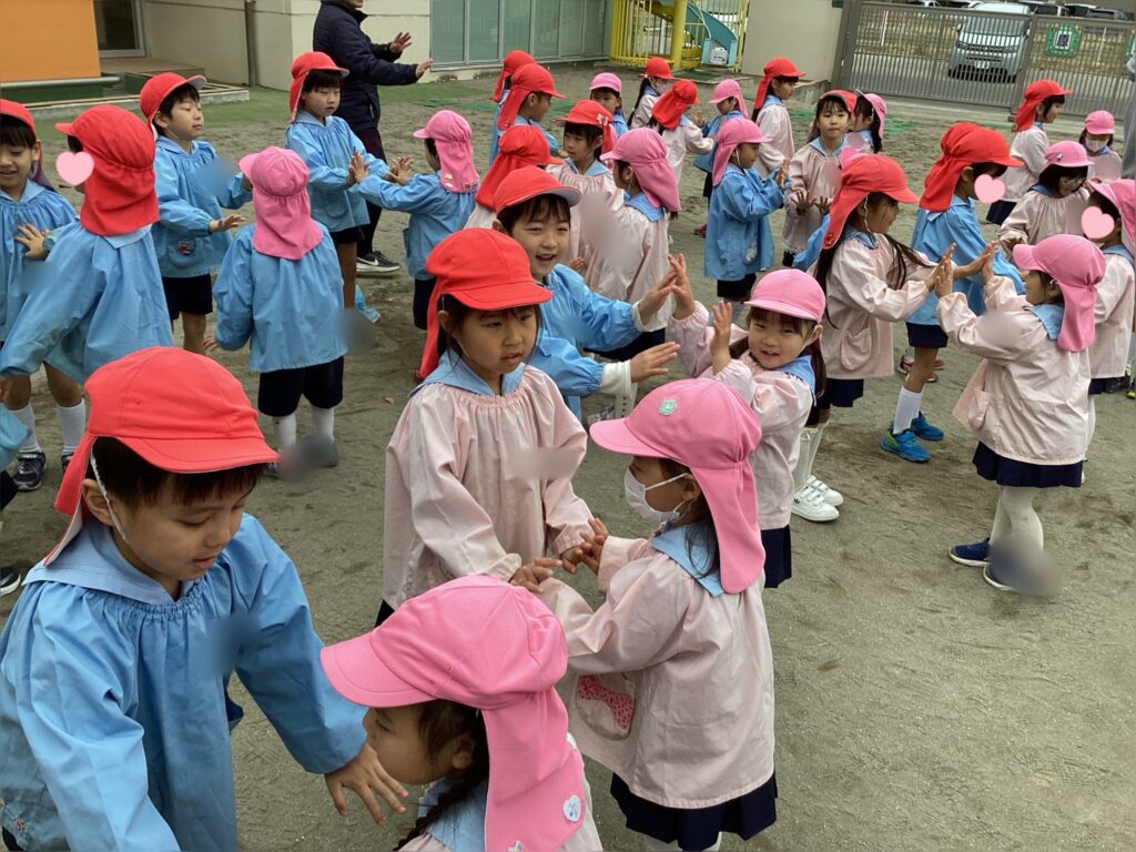 今年度最後のお集まりでした。すみれ1組のお友達とペアになり【きみにあえてうれしい】という曲に合わせて踊ってみました。4月の頃と比べると、すみれ組のお兄さんお姉さんに慣れて穏やかな笑顔を沢山見る事ができるようになったなと感じました。