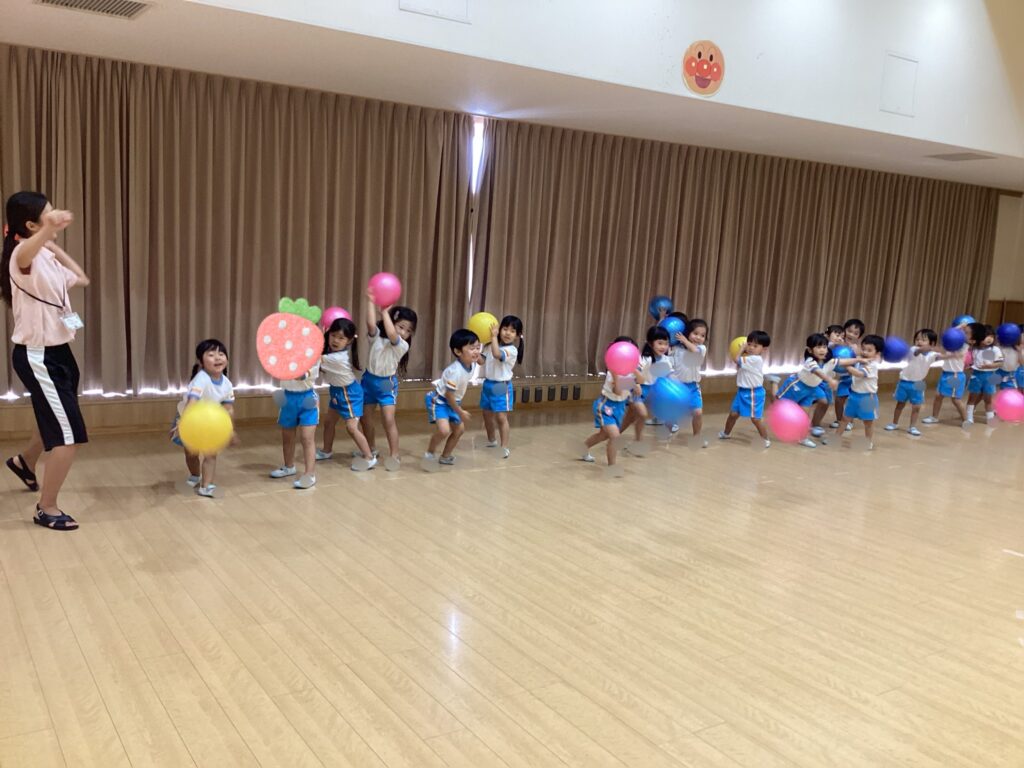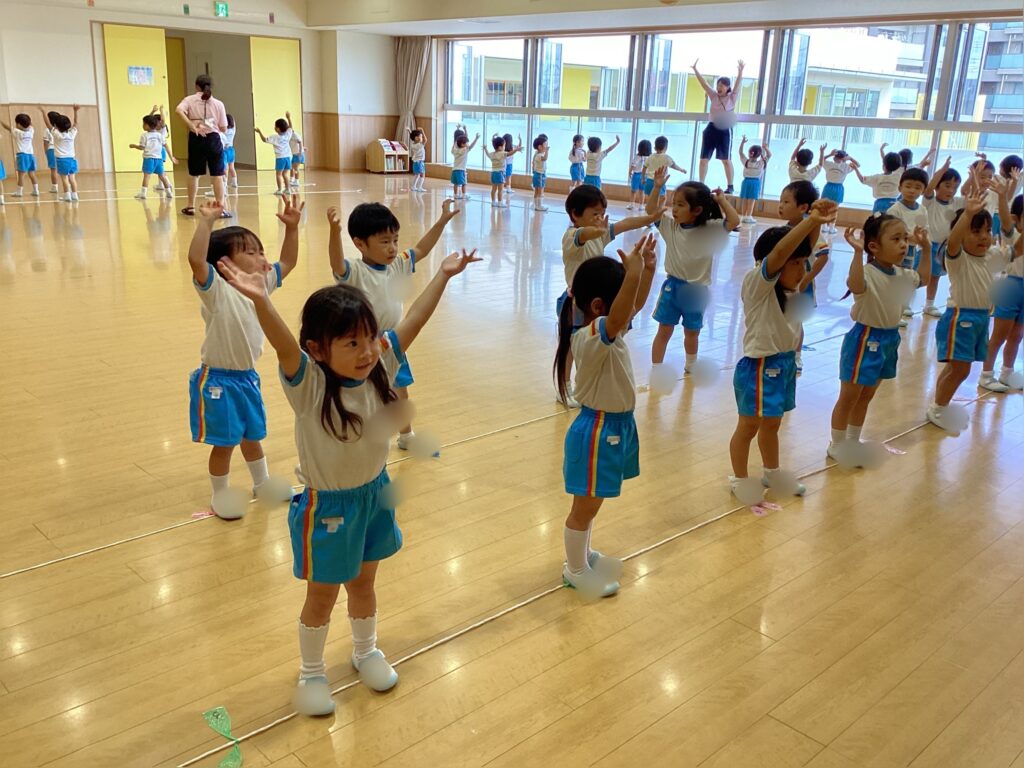 運動会に向けて、遊戯の練習に取り組んでいます。入場、踊り、退場まで自分たちの力で発表出来るように頑張っています。
