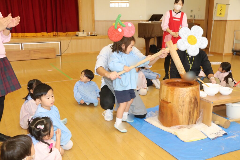 みんなで決めた「ぺったんぺったん」の掛け声と共に1人5回ずつつきます。