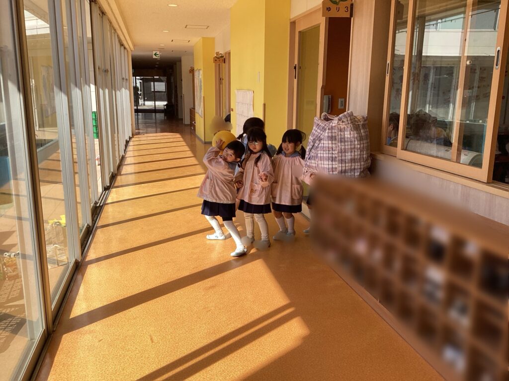 中当ての大会に向けて、ボールを狙って投げることに挑戦しています。練習場所は外に限らず、お部屋の中や廊下でも時間を見つけて行っています。