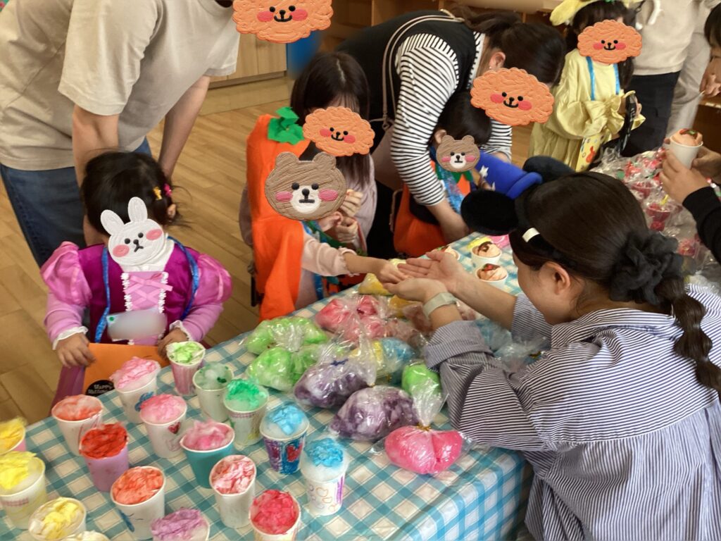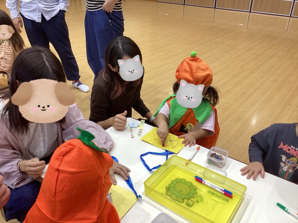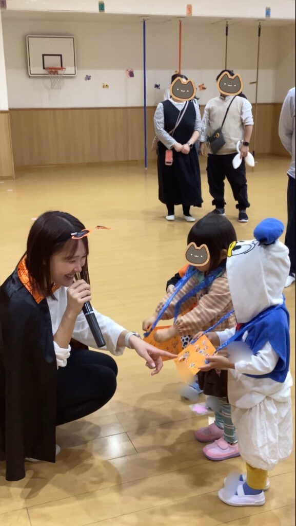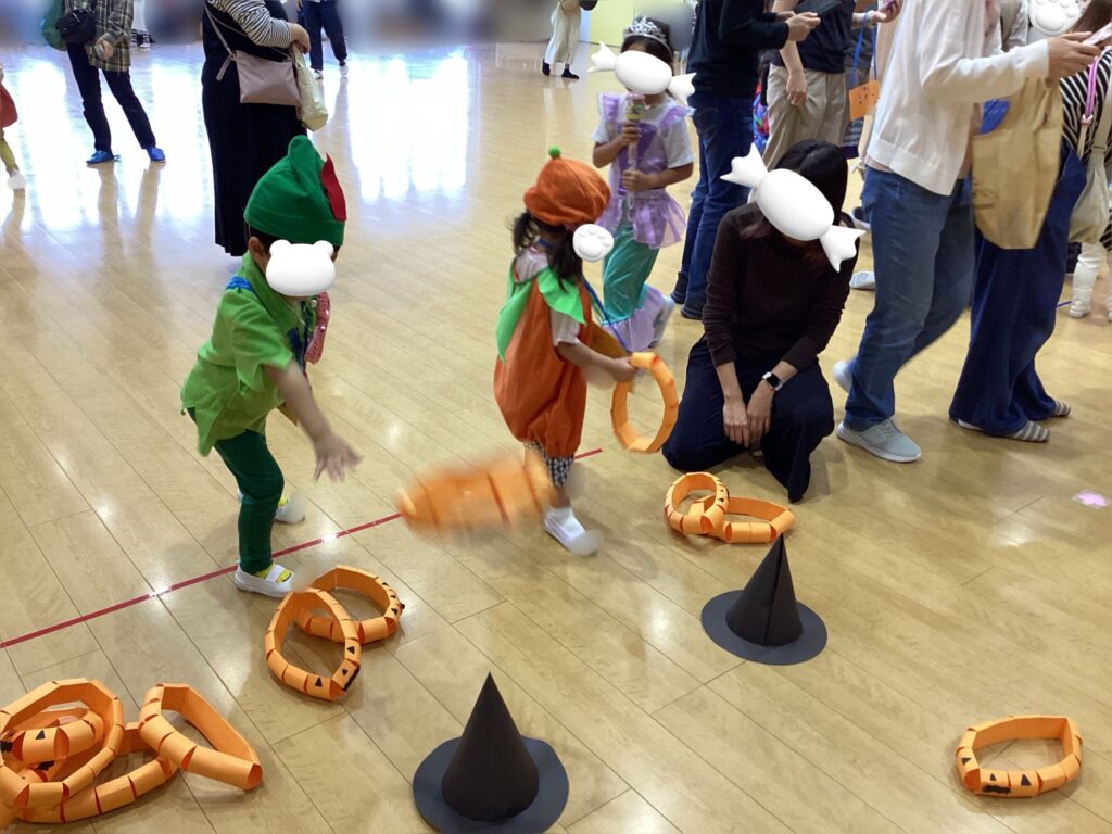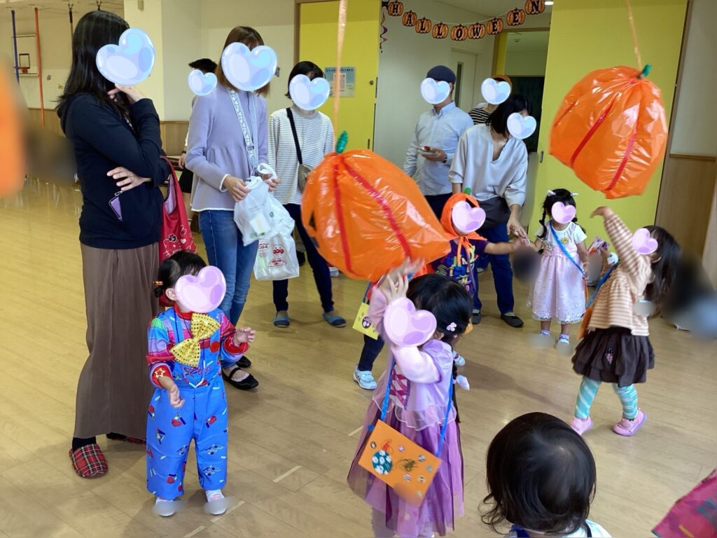 ハロウィンということで、お友達も先生も仮装をし、いつもと違った雰囲気に✨️遊戯室がとても華やかでワクワクしました。