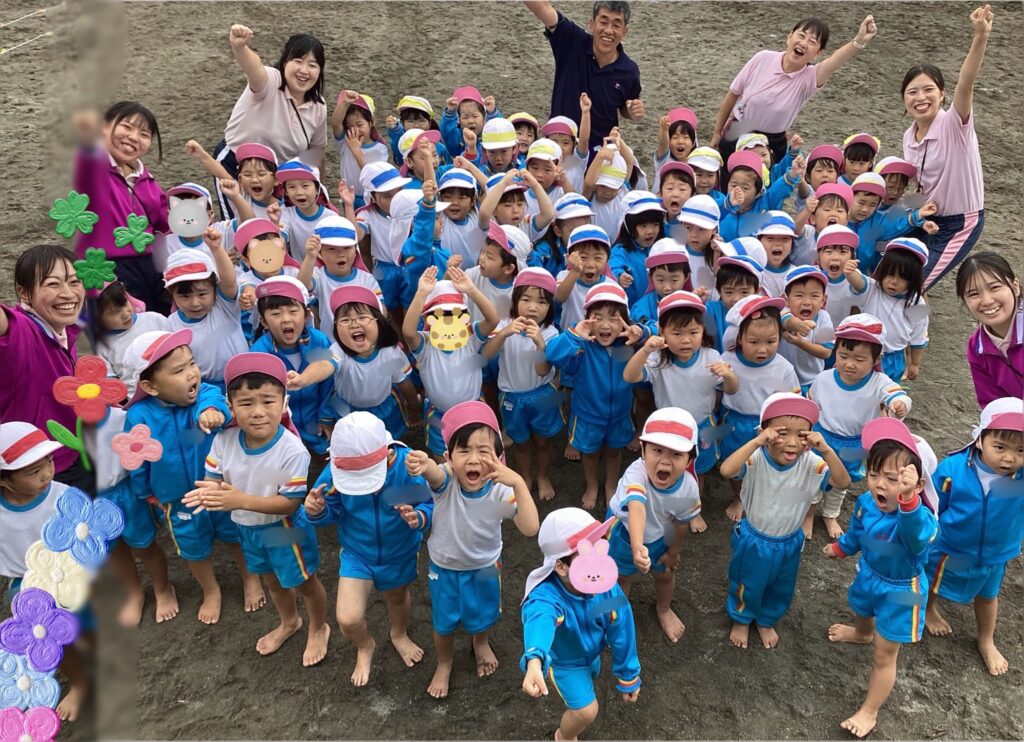 遊戯は、みんなが大好きな曲です。隊形移動に少し苦戦しましたが、自分達の力でできるようになりました。最後にはクラスごとに決めポーズをします。シャッターチャンスです!お楽しみに。