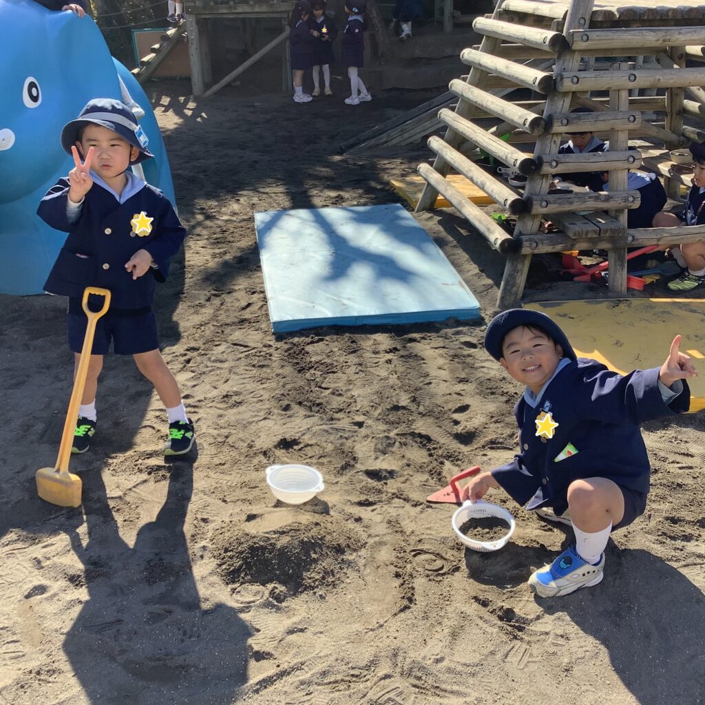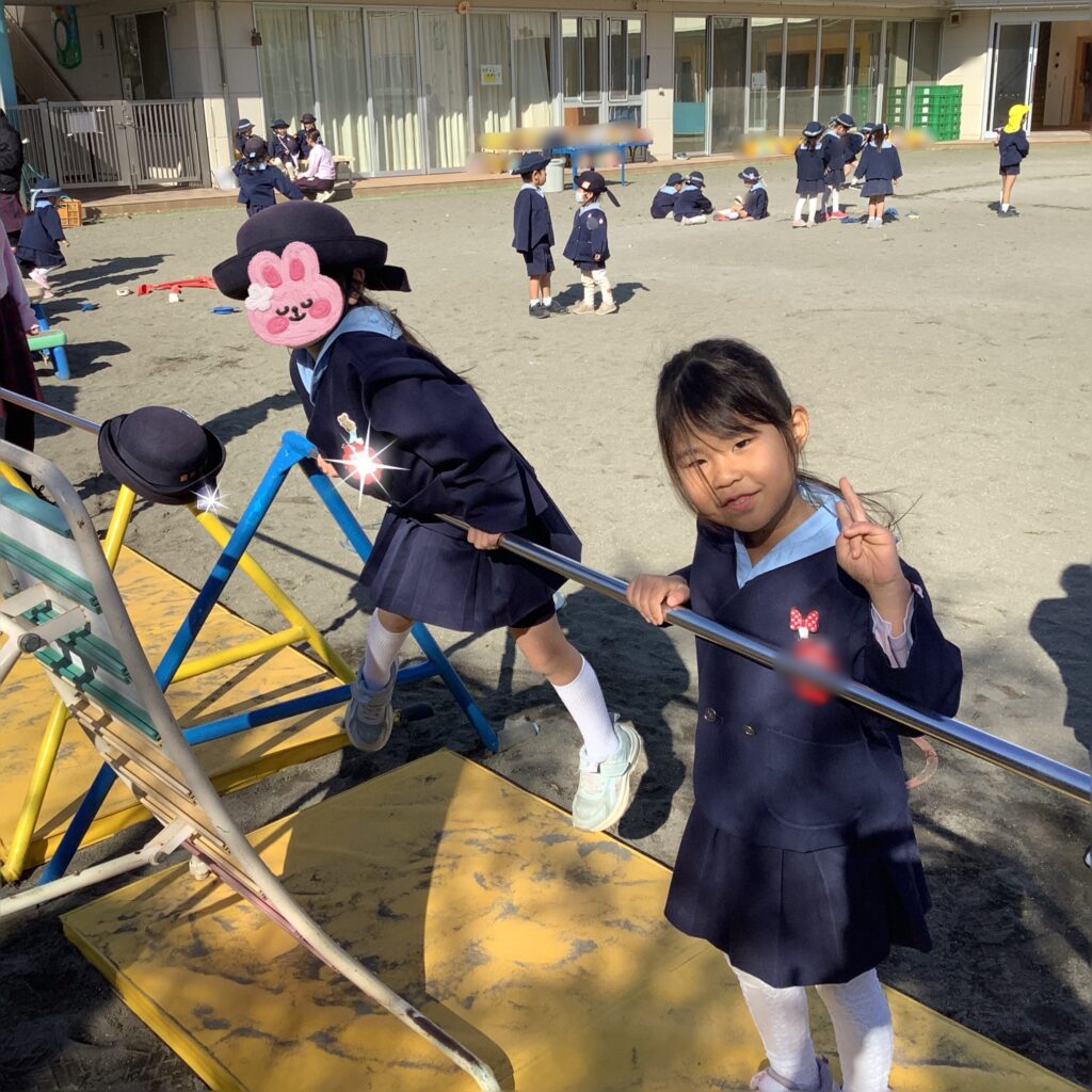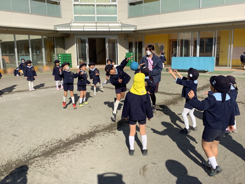 帰りの外遊びでは、穏やかな天気の中お友達と楽しむ姿が見られました。