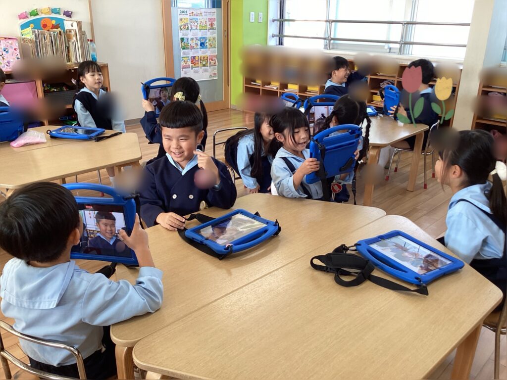 まずはどのように撮るのか実践した後にお友達とペアになり、お互いの自己紹介を動画に収めました。