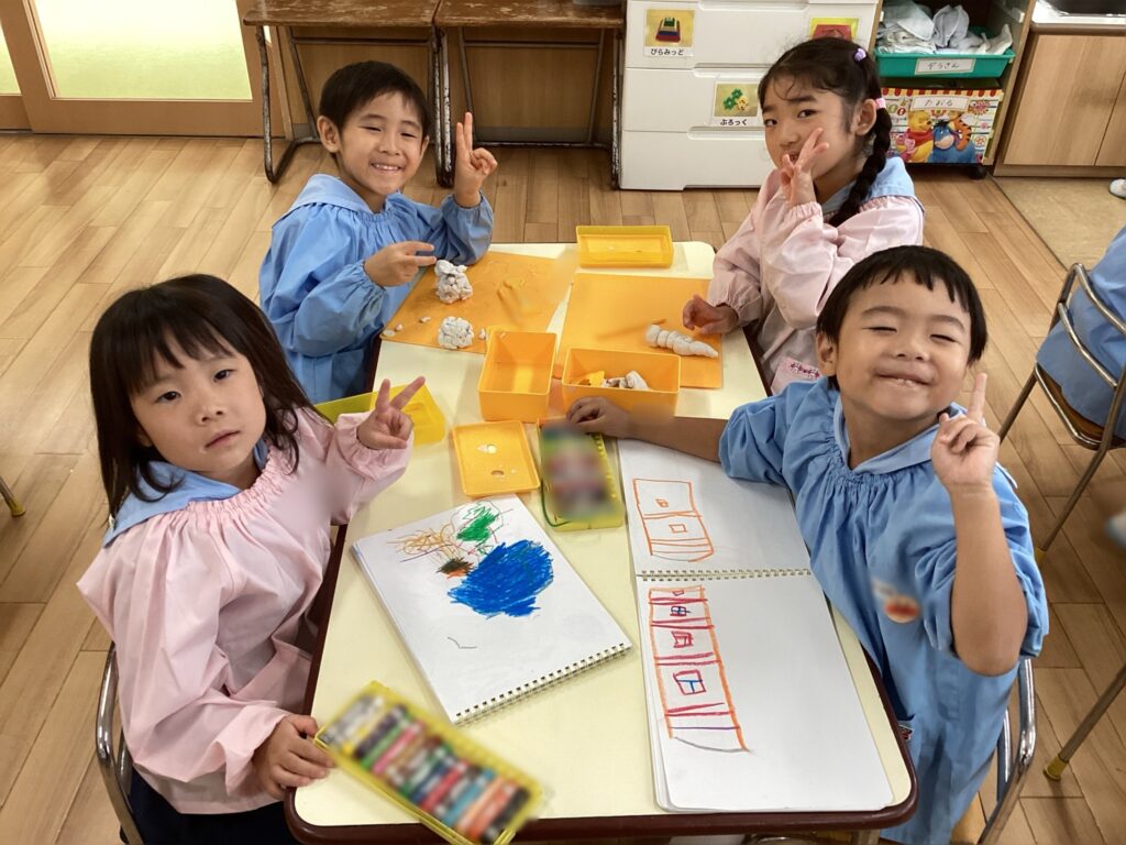 久々の粘土、お絵描きに子ども達は大喜び!