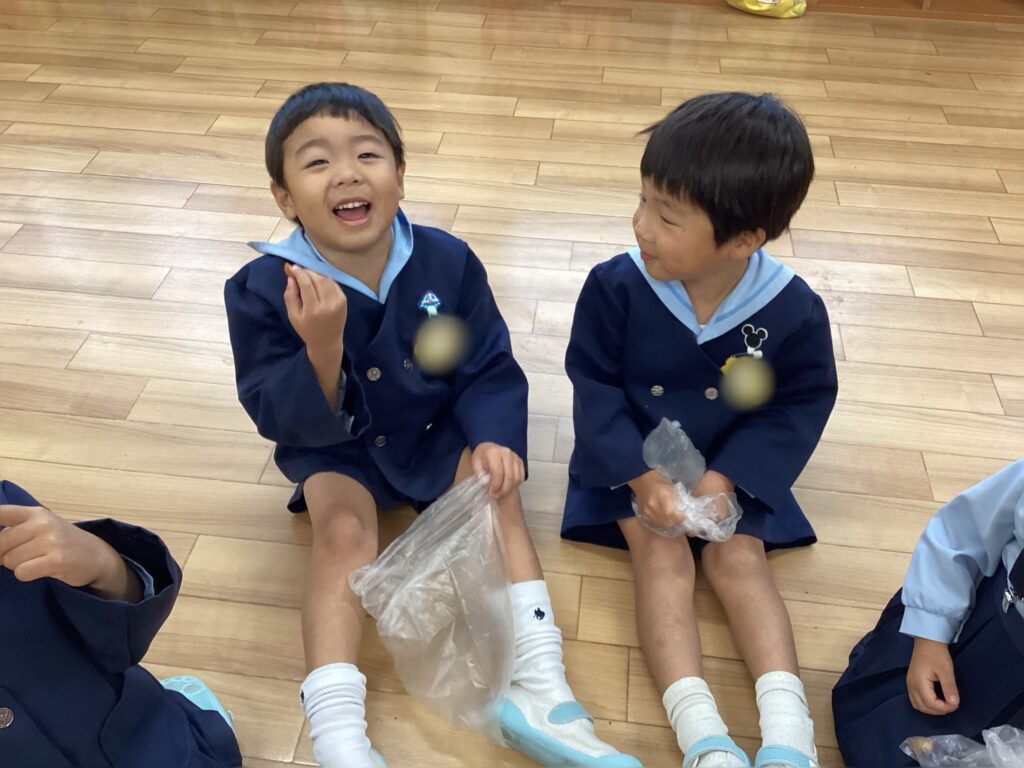 最後には1番太っちょのどんぐりを1つ割って皆で回しながら楽しく研究する事が出来ました。