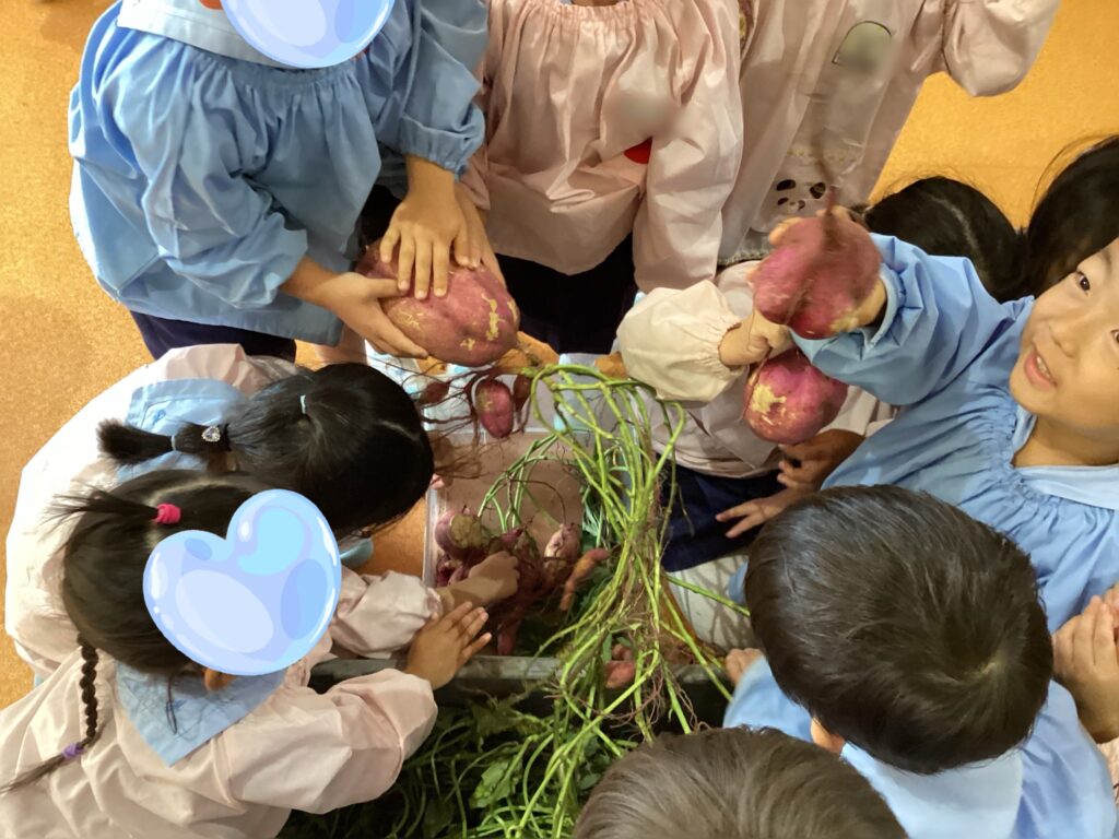 遠足の興味付けとして、幼稚園で掘れたお芋を一足先に観察しました。