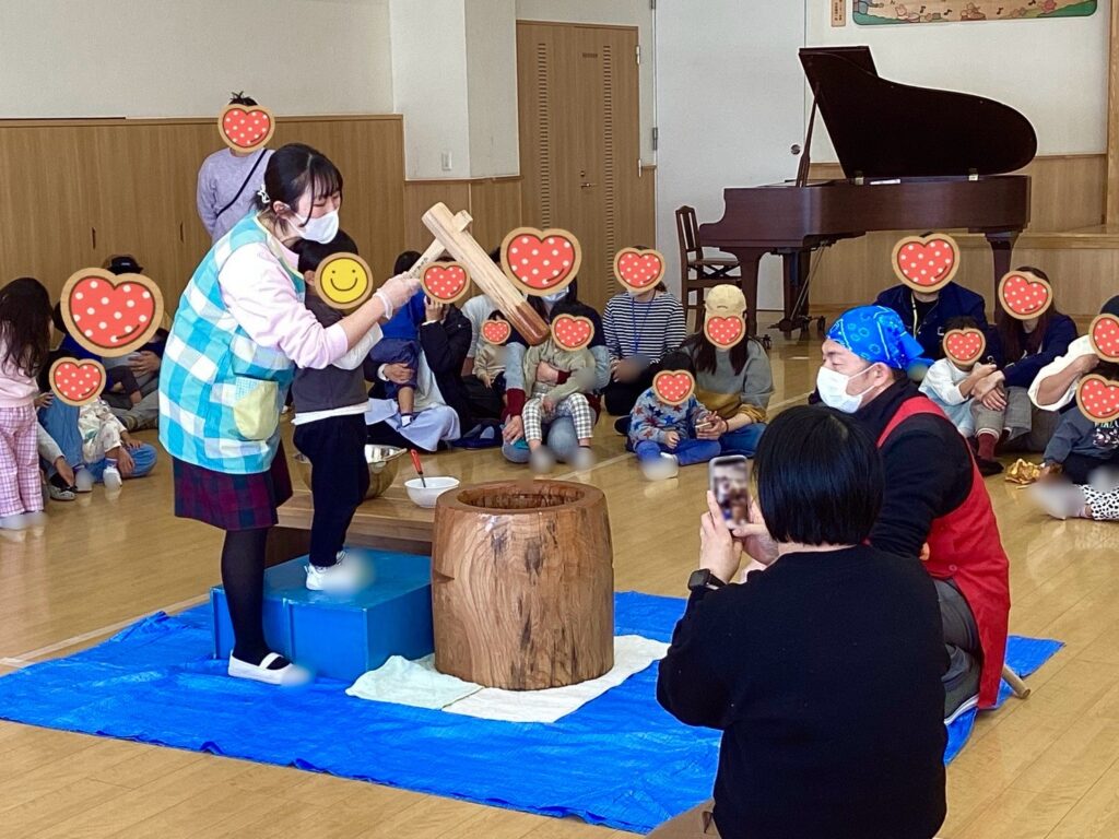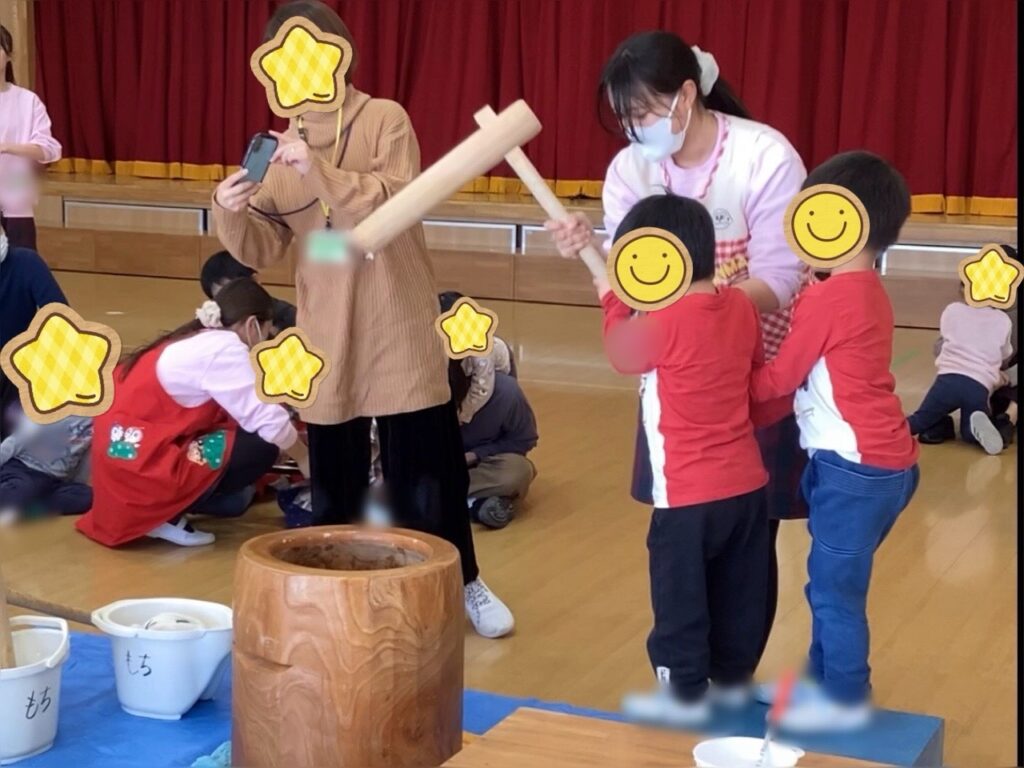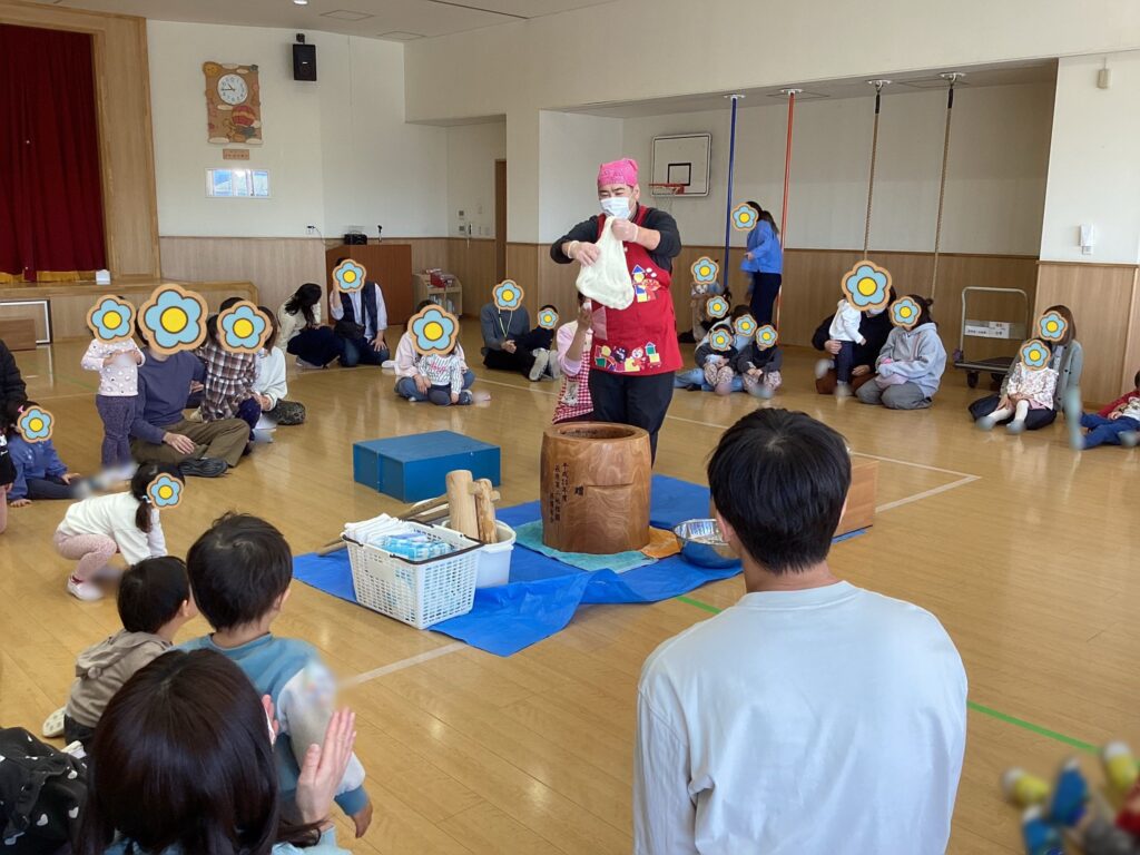 今回は「力を合わせてぺったんこ もちもちお餅に変身だ!」と題しまして餅つきと鏡餅作りを行いました。